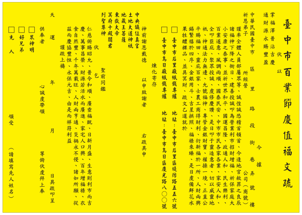 臺中市百業節慶值福文疏