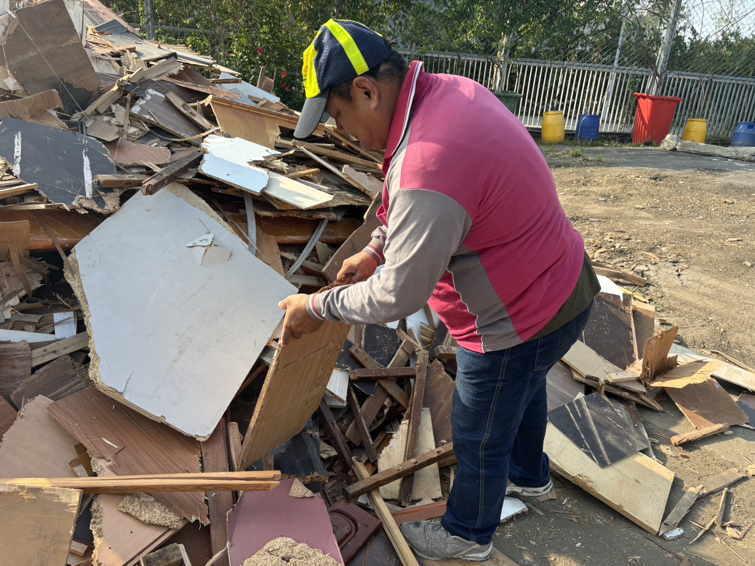 南屯區清潔隊呂姓清潔隊員則於晚班整理廢木料時,發現一個粉紅色金飾袋,隨即提醒其他同仁留意,共拾獲金項鍊1條、金戒指4枚等金飾,金飾重量合計58公克。呂員將物品送交派出所,全程透明處理,毫不貪取,體現團隊誠信與責任感。