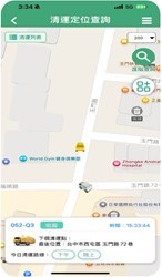 另外也新增「定點查詢」功能,可快速瀏覽各行政區平日定點服務位置與時間,並能過濾出符合民眾定點資訊,方便上班族與通勤族依個人作息彈性選用安排清運垃圾時間。同時新增「車輛追蹤」功能,市民可將常用或關注的清潔車加入追蹤列表,隨時掌握車輛出勤與即時位置資訊,提升清運資訊掌握與便利性。