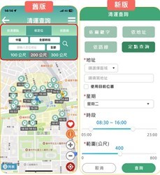 環保局說明,此次APP全新改版,讓市民查詢垃圾清運資訊更加即時、便利。其中「動態清運查詢」功能如同公車預計到站資訊,市民可針對指定清運路線及車輛,即時查詢清運進度與到站點位,有別於傳統單一站點資訊,整條路線的點位與車輛動態均可即時顯示,並依實際清運狀況更新抵達時間功能,結合車輛 GPS 即時更新機制,市民可即時掌握指定路線及車輛清運進度,了解清潔車抵達各點位的最新預估時間,避免久候情形。