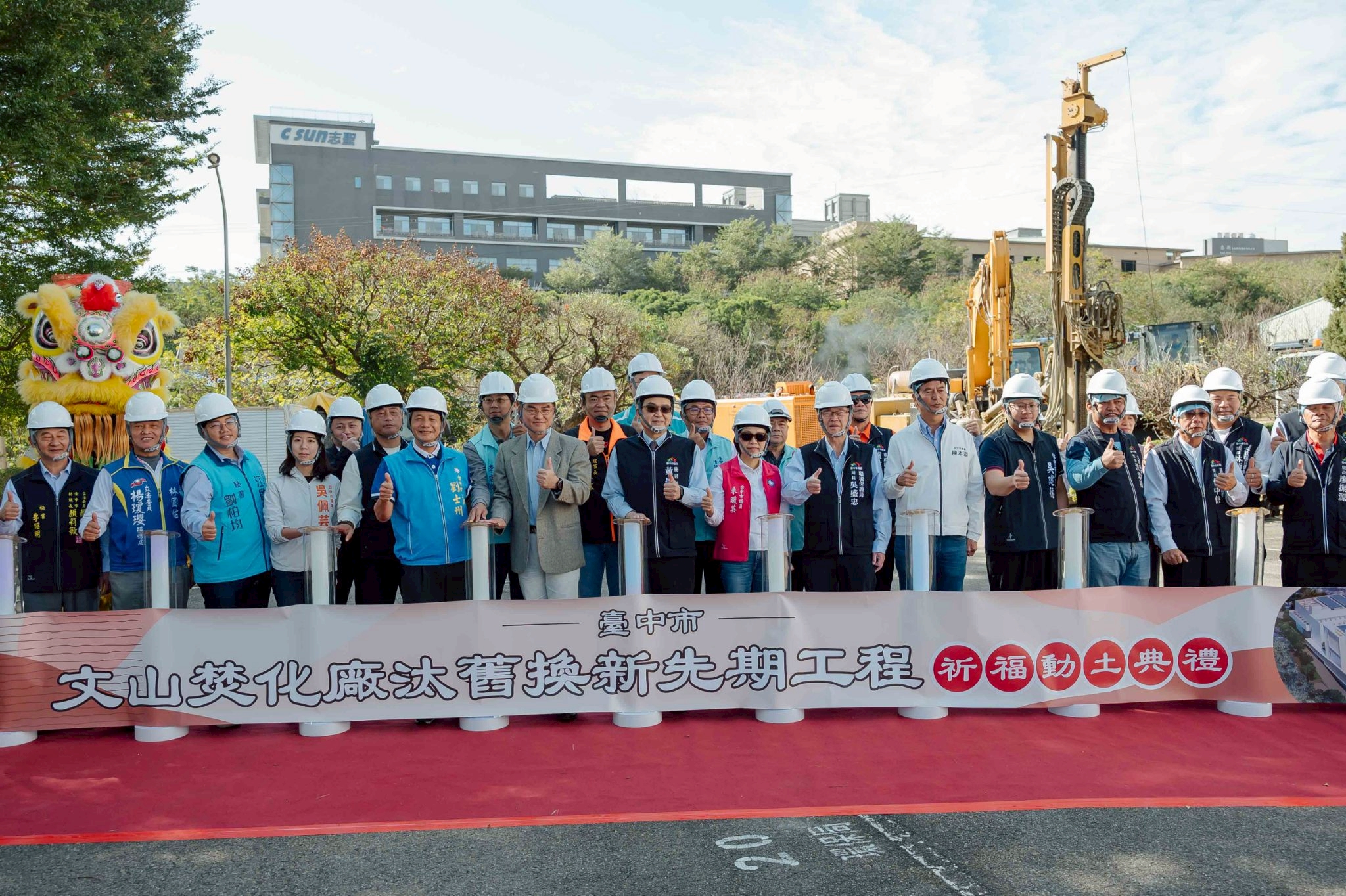 為提升老舊焚化廠處理效能、改善廢棄物去化量能及環境空氣品質,台中市政府推動文山焚化廠汰舊換新工程,今(22)日舉行先期工程祈福動土典禮。秘書長黃崇典代表市長盧秀燕出席致詞表示,文山焚化廠BOT案已於12月11日完成簽約,預計115年動工、118年底完工,119年正式營運,完工後將大幅提升垃圾處理量與發電效率,兼顧環保與能源發展,為台中市建立長遠穩定的垃圾處理機制。