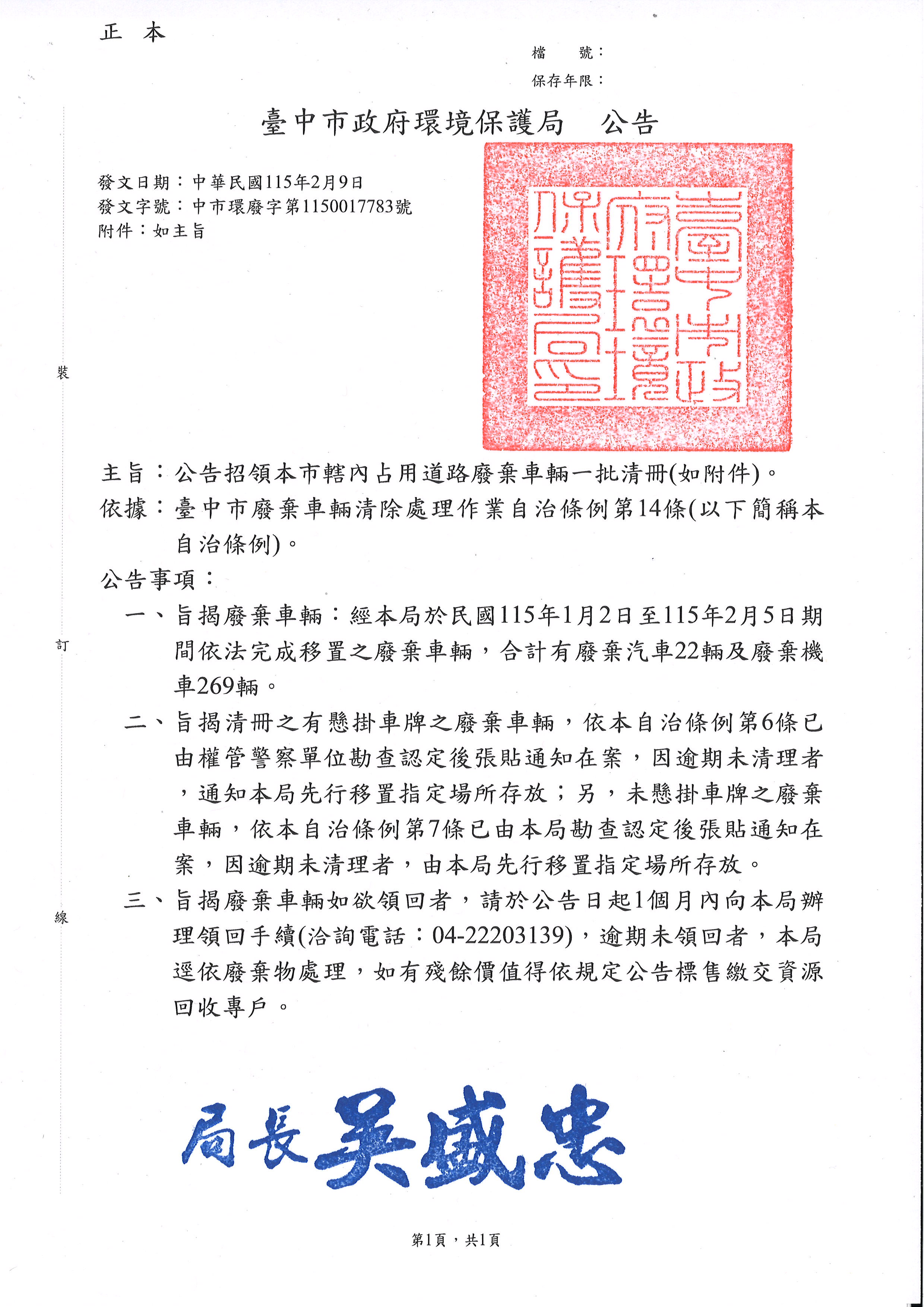 發文字號:中市環廢字第1150017783號