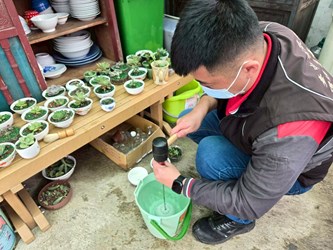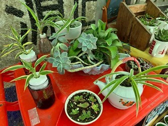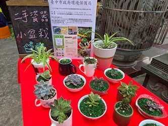 此外,回收物兌換宣導品「二手瓷器小盆栽」也富含循環利用創意,大安區清潔隊員將回收來的二手瓷器細心清洗整理,將瓷器完全浸泡於水中分散衝擊力,並在馬克杯、瓷器杯碗底部打洩水孔,再搭配各式各樣多肉植物及綠色植栽,如吊蘭、黃金葛、吊竹草、竹百合、銅錢草及虎尾蘭等,搖身一變成為兼具美感與淨化空氣功能的療癒小盆栽。這些別具巧思的再生盆栽不僅深受民眾喜愛,也讓參與者在實際兌換過程中體驗資源循環再利用的價值,進一步將環保理念內化於生活之中。現場不少民眾表示,透過活動不僅學到正確回收知識,也感受到環保其實可以兼具創意與美感。