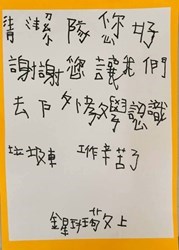 五權倉庫方老師表示,此次利用自然資源部公車安排參訪,讓孩子們收穫豐富,感謝北區清潔隊規劃流程活動及贈送豐富創意的小禮物,不僅認識清潔隊的工作內容,也學習尊重每一位辛勞的清潔人員。