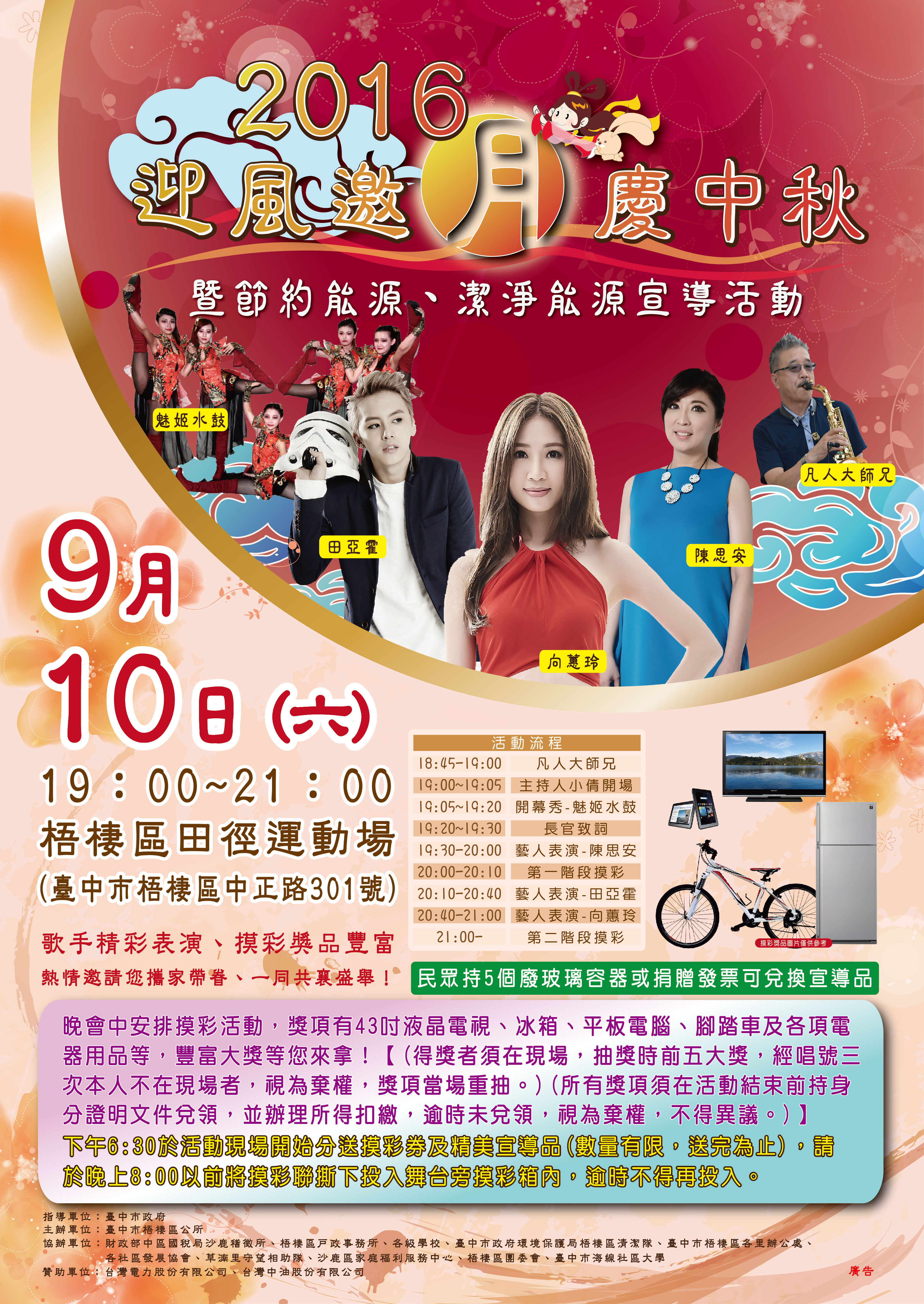 臺中市梧棲區公所辦理「2016迎風邀月慶中秋暨節約能源、潔淨能源宣導活動」