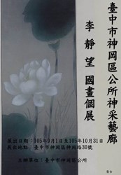 一、邀請水墨畫家─李素梅(靜望)女士展出,李女士神岡人,師事國畫名家廖鴻興先生學習水墨國畫,畫作曾在神岡區圖書館、葫蘆墩文化中心等處聯展多次,作品淡雅新麗、清幽脫俗,頗具師承風格。