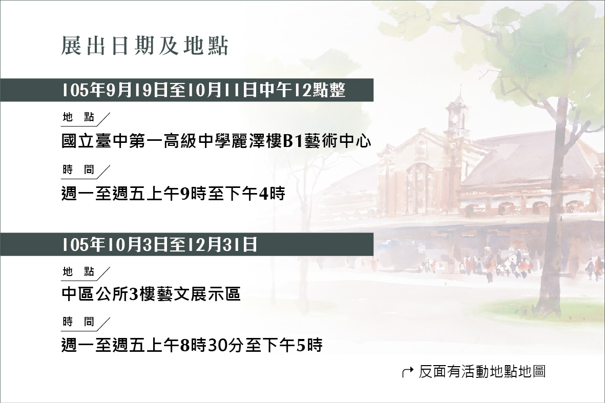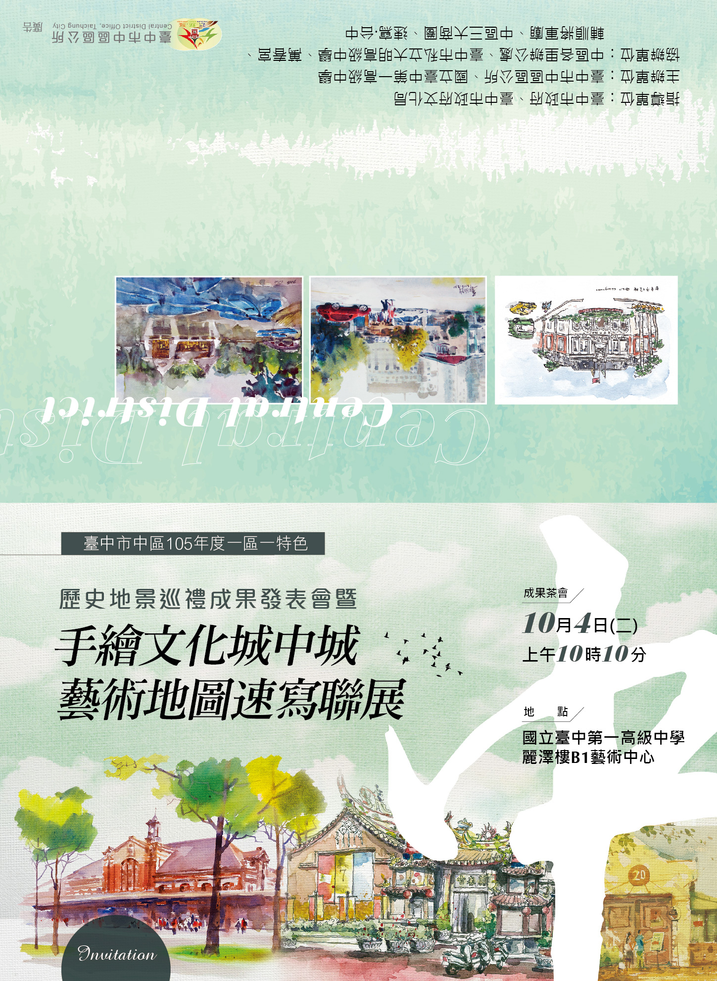 本次聯展作品係由一群熱愛臺中的朋友,用畫筆繪出對舊城的感受,畫出臺中人共同的記憶與回憶─臺中車站、臺中公園、第二市場、新盛橋、建國市場、宮原眼科、全安堂、臺中放送局、國立中興大學附屬臺中高級農業學校(原臺中高農)、臺中州廳、臺中文化創意產業園區、林之助紀念館、綠川及柳川等,中區公所希望藉由這個聯展,讓更多的人認識舊城,這個到目前為止仍保有日治時期的文化地景城市。