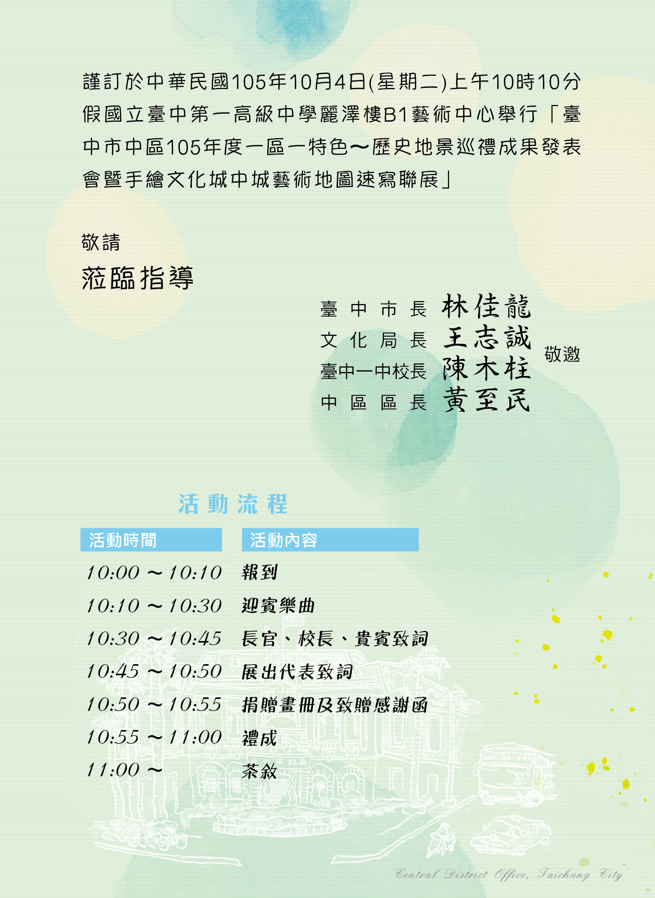10:00〜01:10 報到 國立臺中第一高級中學麗澤樓B1藝術中心
