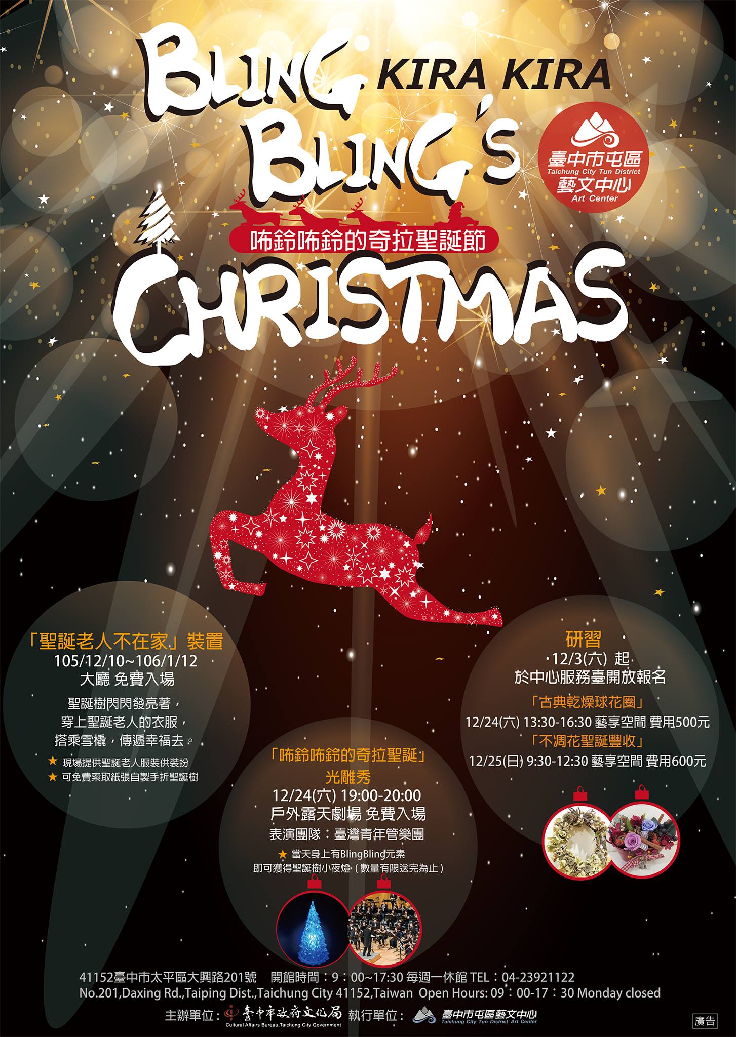 臺中市政府文化局屯區藝文中心105年12月10日起至106年1月12日舉辦「咘鈴咘鈴的奇拉聖誕節」系列活動