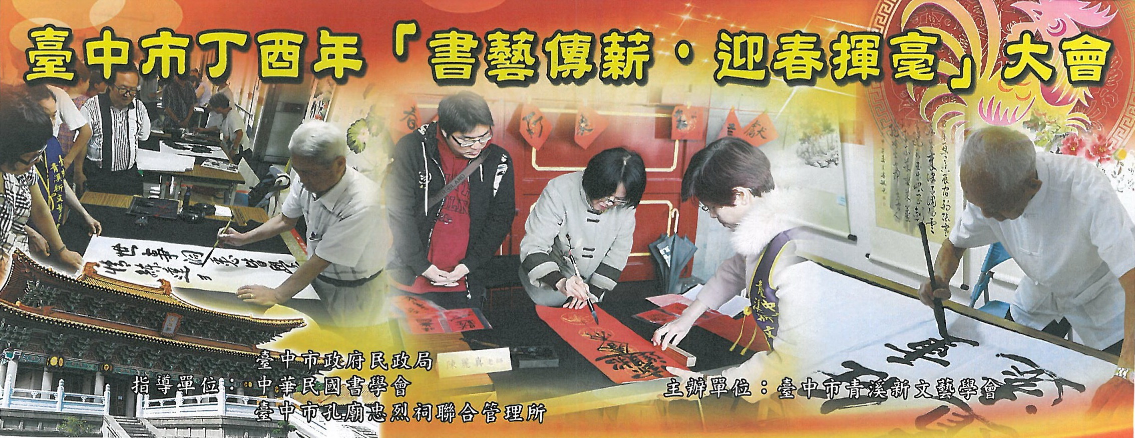 為弘揚書法之傳統文化及儒家思想,於迎春賀歲之際,辦理「書藝傳薪,迎春揮毫」活動,藉本活動使民眾體驗傳統書法之美及經由書寫內容了解儒家思想概要,並在春節前夕,增添迎春喜氣。