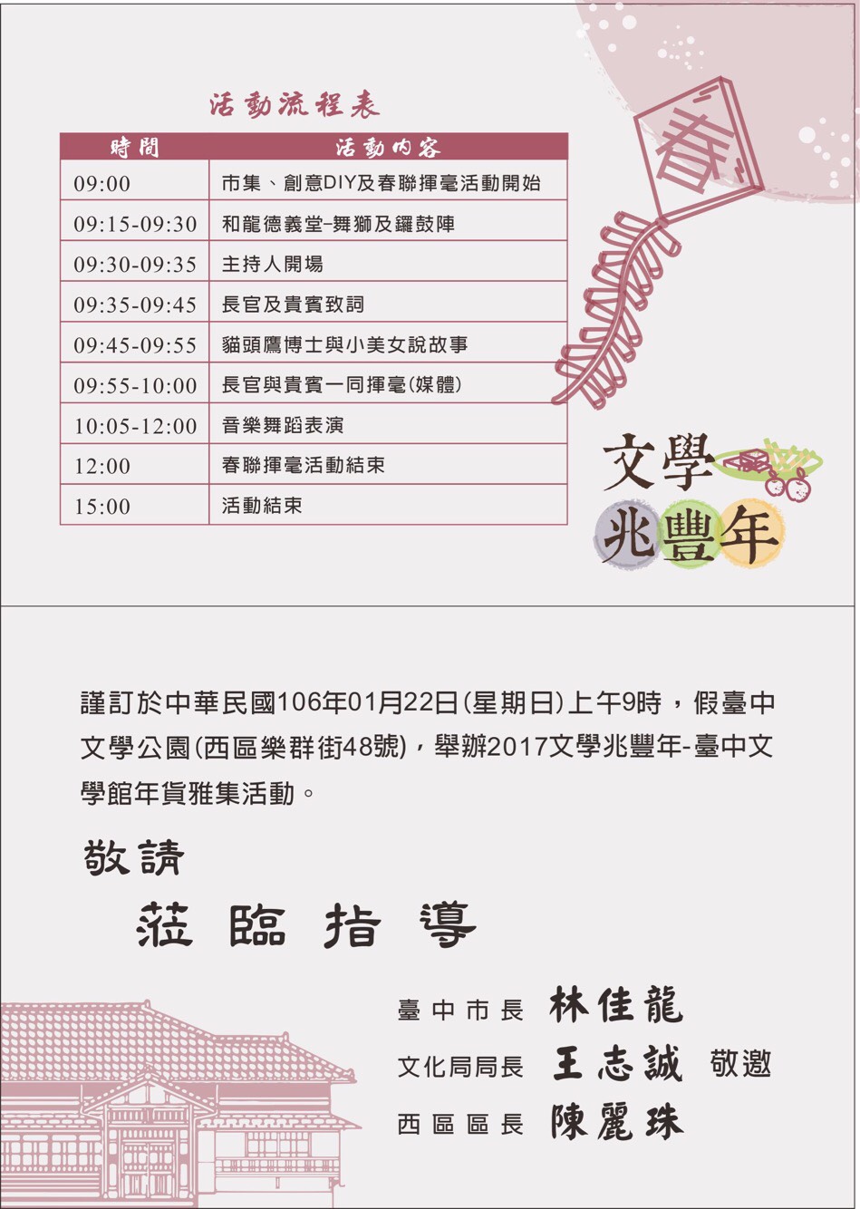 西區區公所 - 2017文學兆豐年-臺中文學館年貨雅集活動