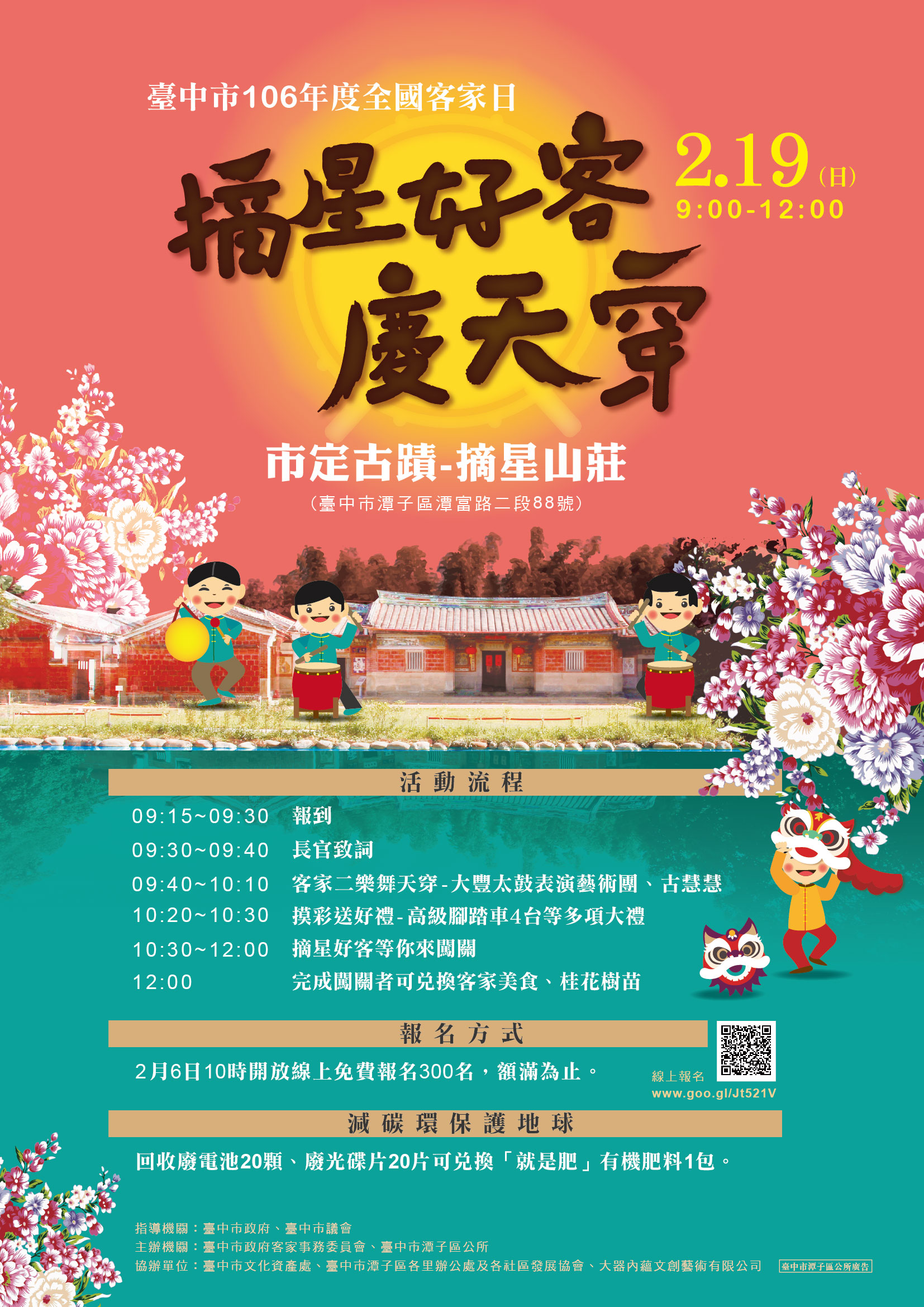 臺中市潭子區公所辦理「臺中市106年度全國客家日-摘星好客慶天穿」活動,歡迎踴躍報名參加